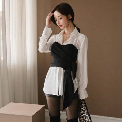 Fashionable Temperament Loose Chest Tie Bow Waist Two-piece Set