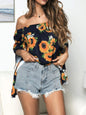 Floral Print Off-Shoulder Flounce Sleeve Blouse