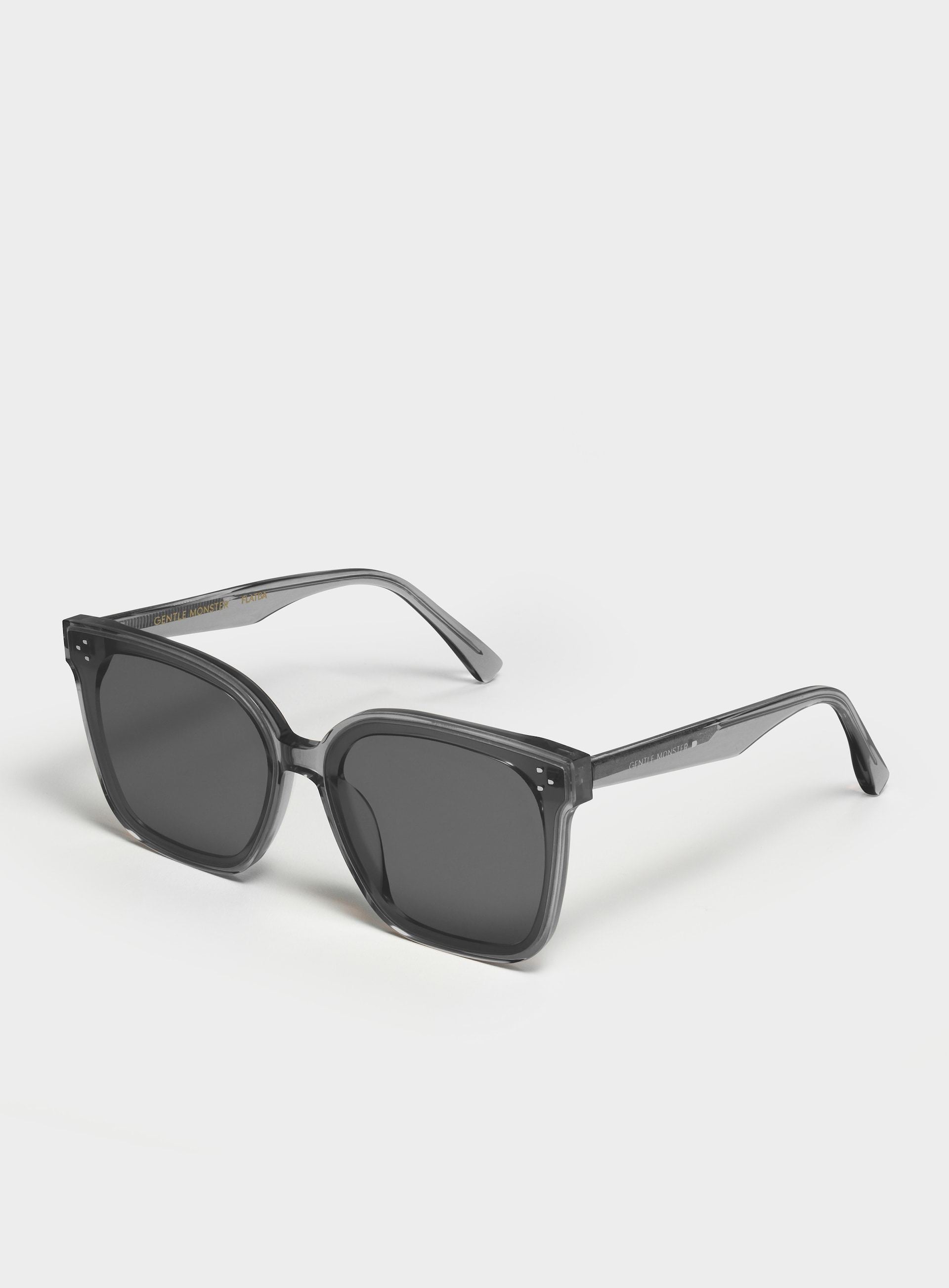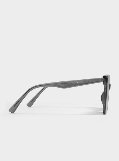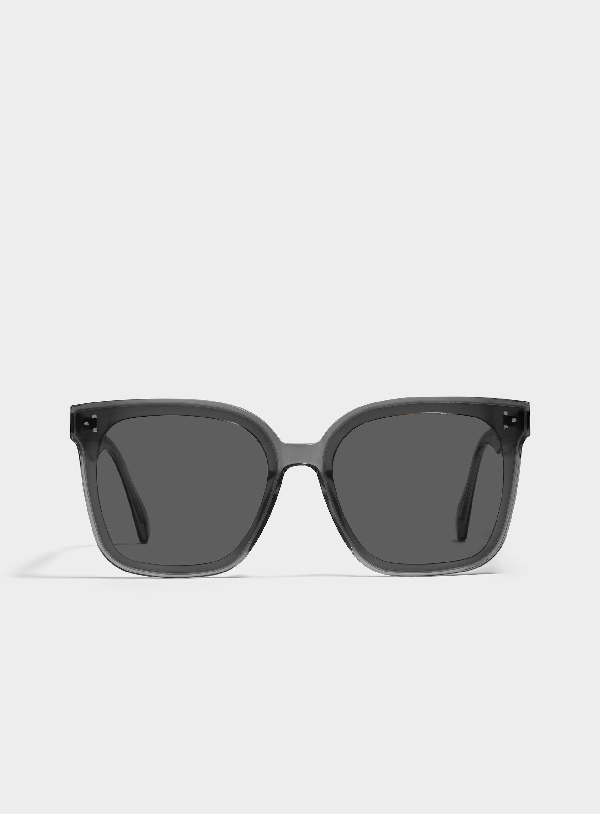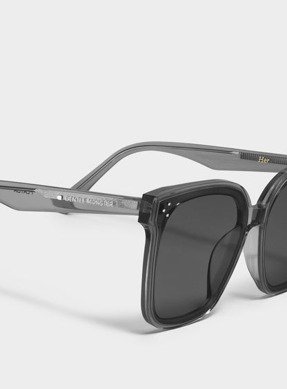 Introducing Her G1, an oversized square frame in the 2020 New Flatba Series with 100% UV protected nylon Zeiss lenses. This style is accentuated with three bullet shaped pins on the lenses and complemented with engraved Gentle Monster logos on the temples.