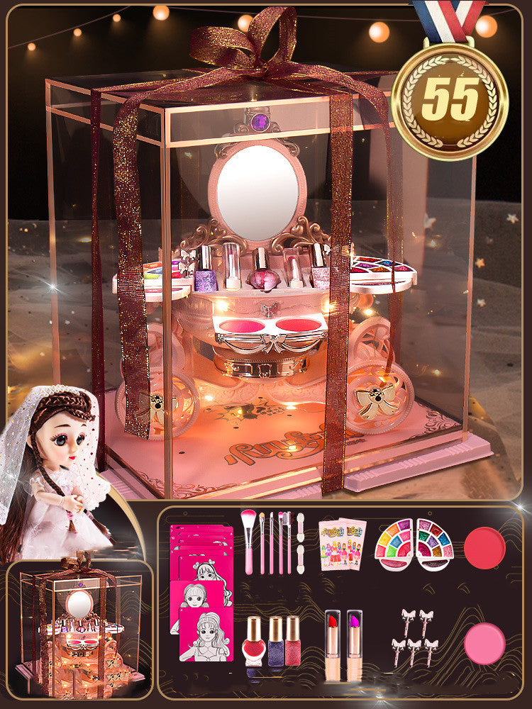 Color Classification: [Color Box Pack] 54-piece Dresser Set (Sound and Light Music) + Makeup Gift Pack [Color Box Pack] 54-piece Dresser Set (Sound and Light Music) + Wedding Princess + Gift Pack [Gift Box] Dresser 54 One piece set (sound and light music) + wedding princess + gift package [surprise lighting luxury gift box] dressing table + Barbie (sound and light) free makeup brush + makeup card + Makeup remover children's toys