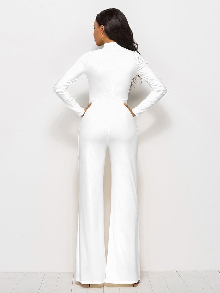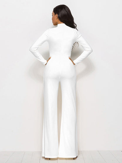Long Sleeve Mock Neck Wide Leg Jumpsuit