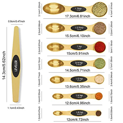 - Accurate Measuring Spoons Set: Designed stainless steel double-headed spoons set and a leveler,black plastic label on the magnetic measuring spoons set stainless steel with clear usa standard measurement markings is useful for you to cook pastry food more accurately.This tables gadgets new apartment essentials spoons set is available in various sizes, includes 1/8 tsp, 1/4 tsp, 1/2 tsp, 3/4 tsp, 1 tsp, 1/2 Tbsp, 1 Tbsp plus and 1 leveler.