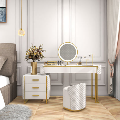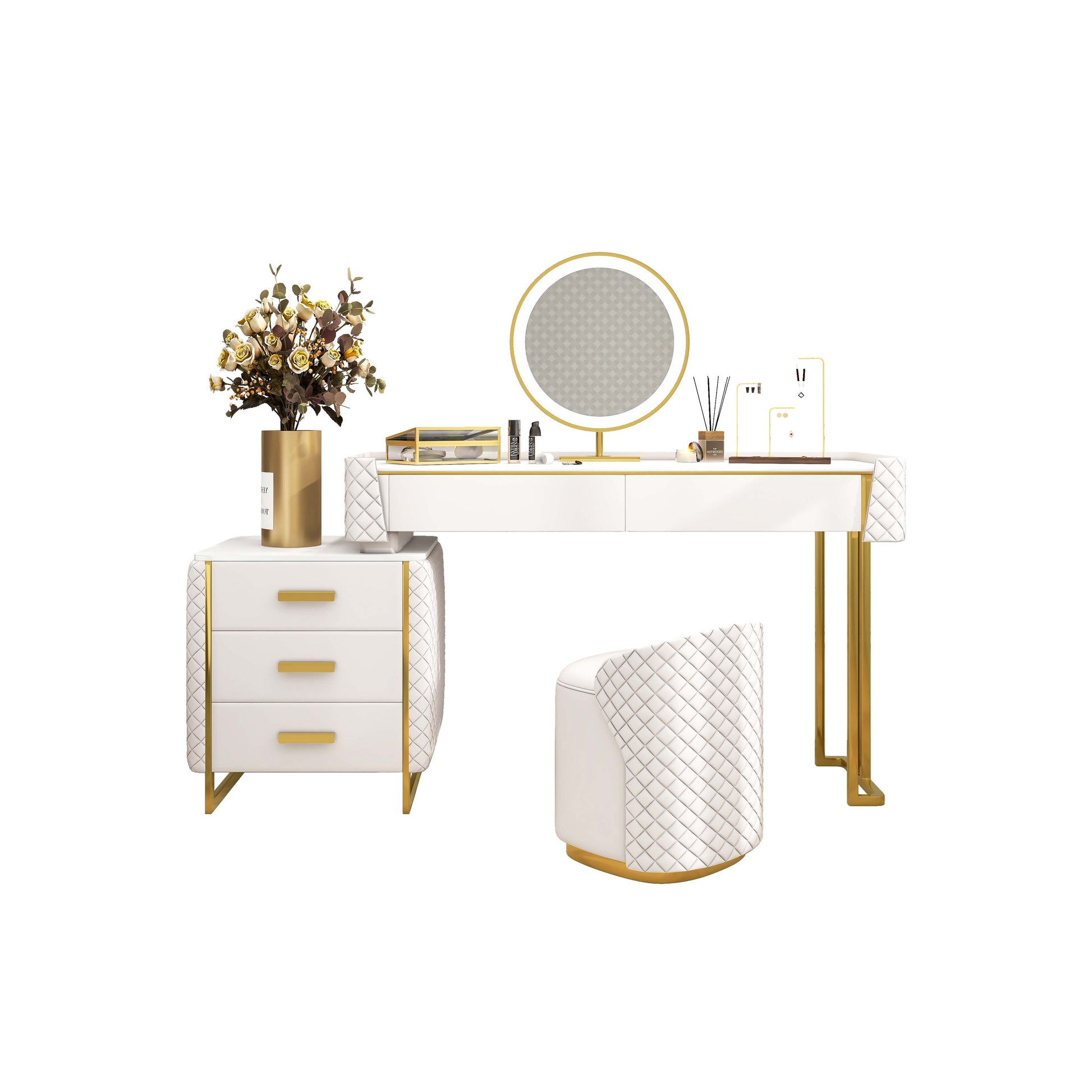 This vanity table features a marble top and five large-capacity drawers to store your cosmetics like lipstick, rouges eye shade, and other odds and ends, perfect for your make-up wearing. Combining an elegant style and a modern aesthetic, this makeup table is a masterpiece that its powerful glamour will fill your room with a sense of luxury beauty, and turns into the best choice to complete your home style for your bedroom!