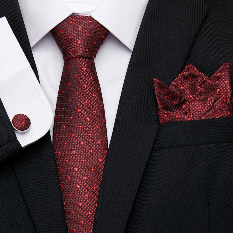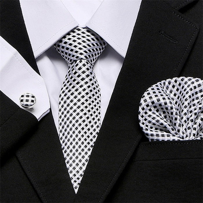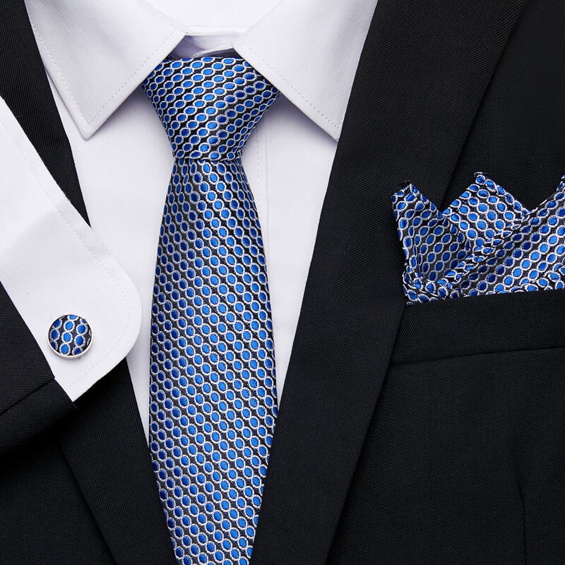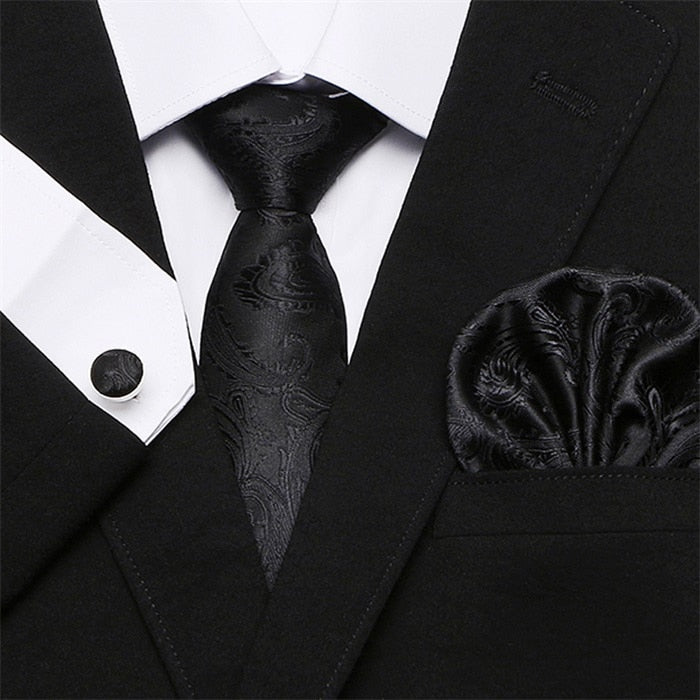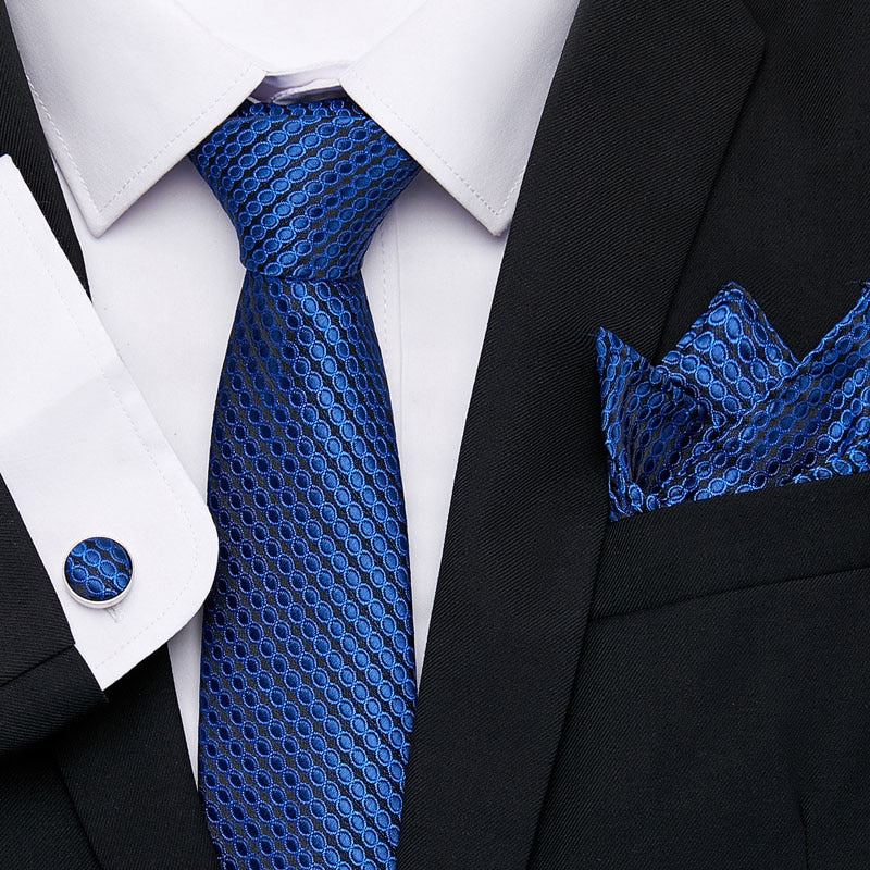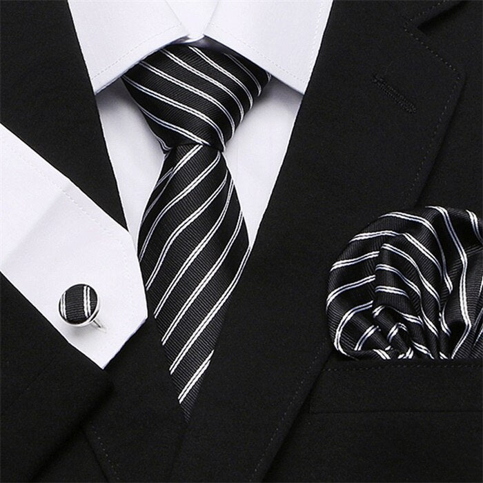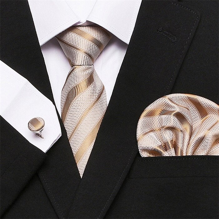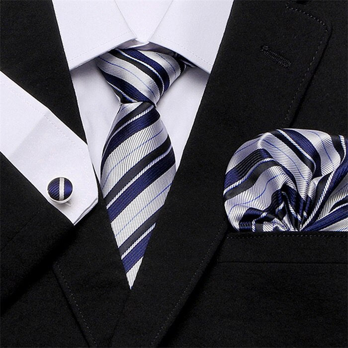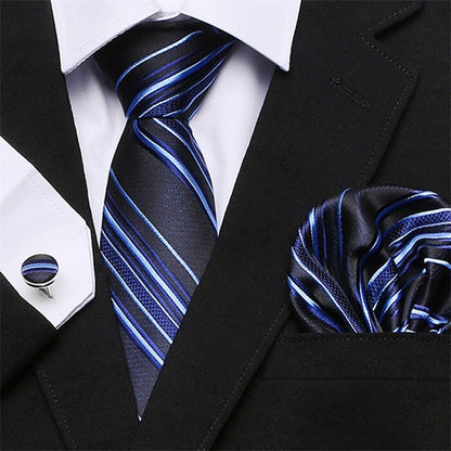 Men's Silk Tie Handkerchief and Cufflinks Set
