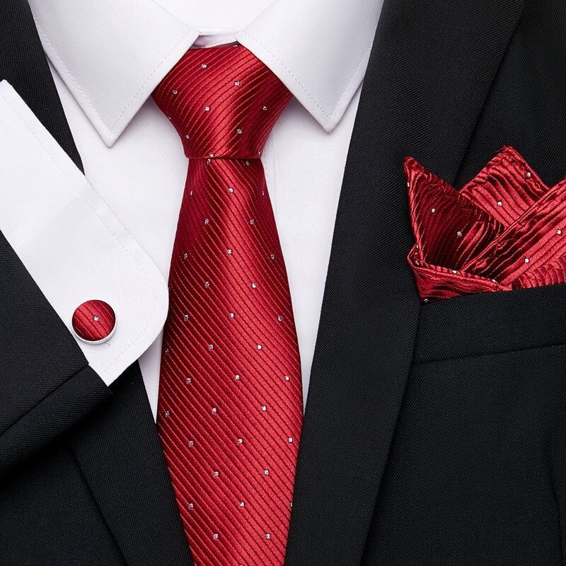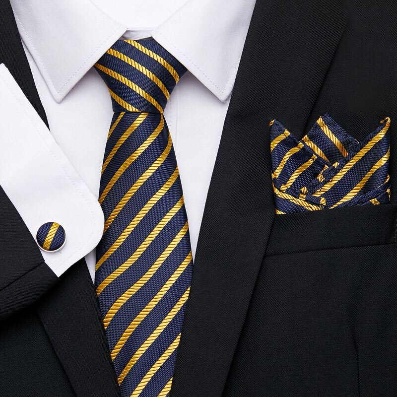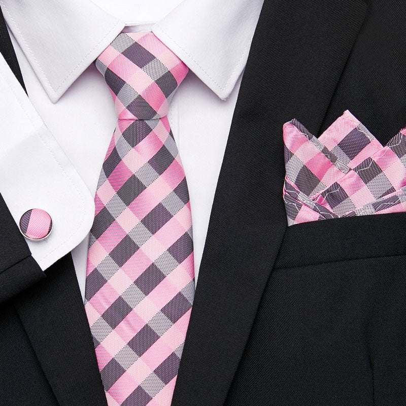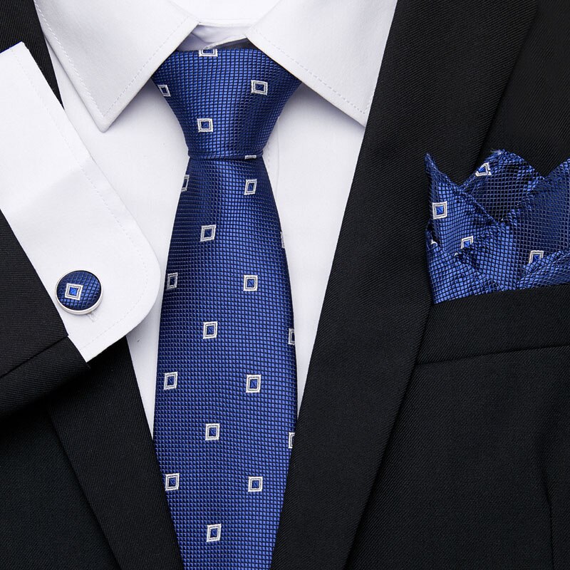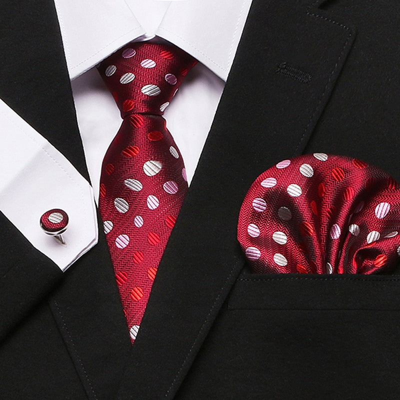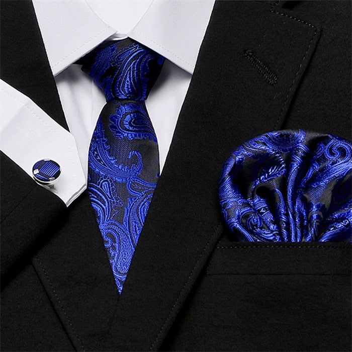 Men's Silk Tie Handkerchief and Cufflinks Set