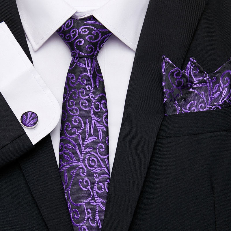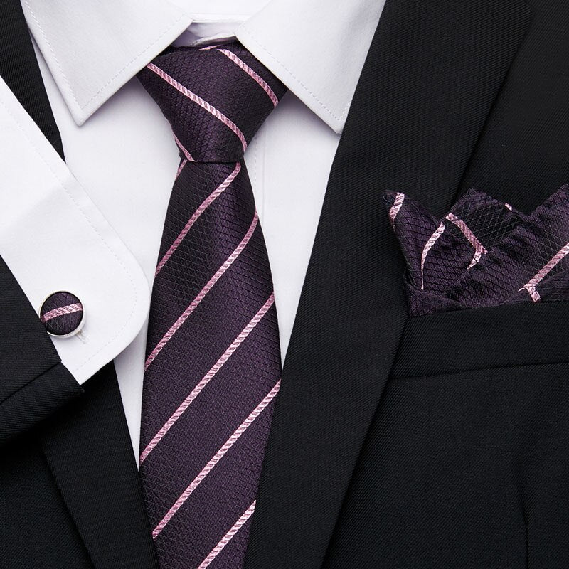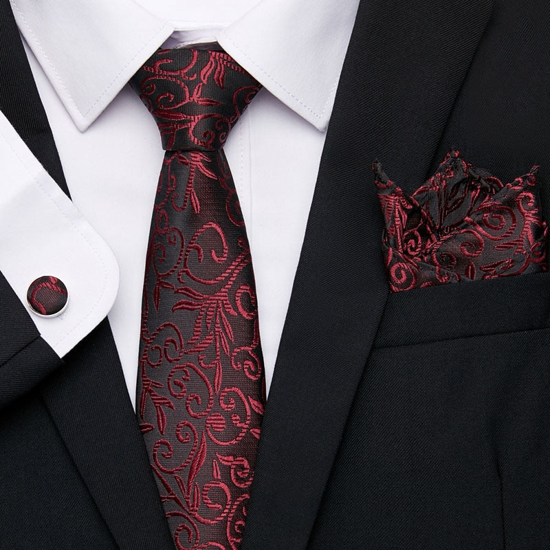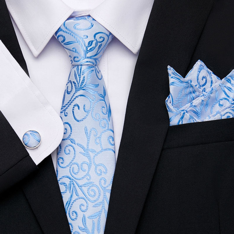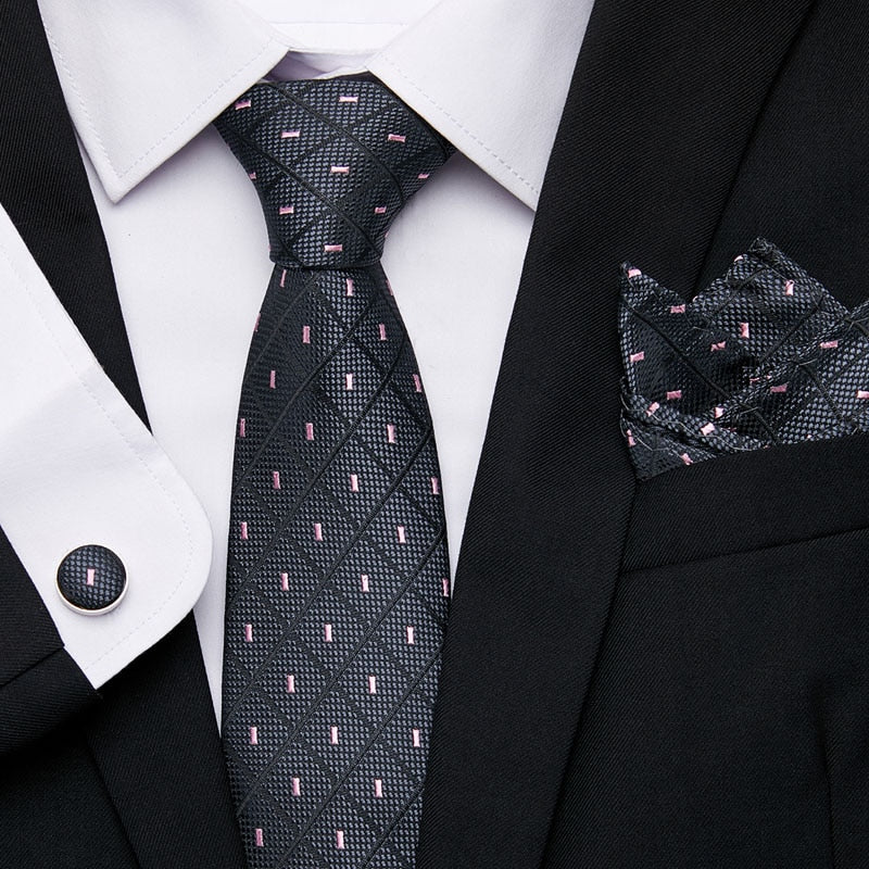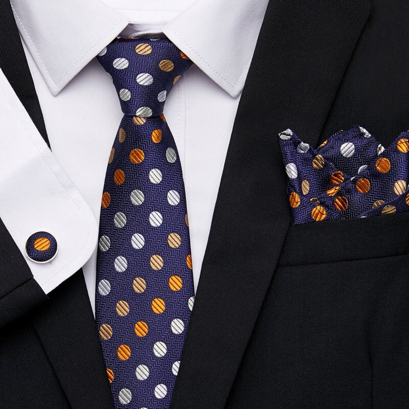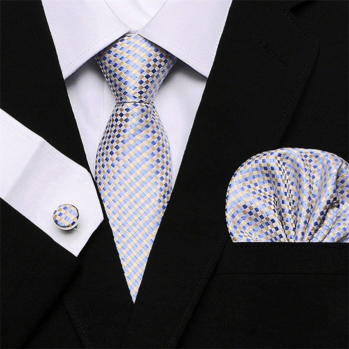 Men's Silk Tie Handkerchief and Cufflinks Set