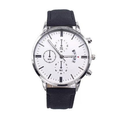 This men's wristwatch is the perfect accessory for the fashion-savvy man. The sleek, stylish design is perfect for any look - whether you're dressing up for a night out or keeping it casual for a day at the office. The classic black and silver color scheme is timeless and chic, and the calendar function is a handy addition to keep you organized. The leather band is comfortable and adjustable, making this watch a versatile choice for any wrist size. Whether you're treating yourself or gifting it to someone special, this wristwatch is sure to be a favorite accessory for years to come.
