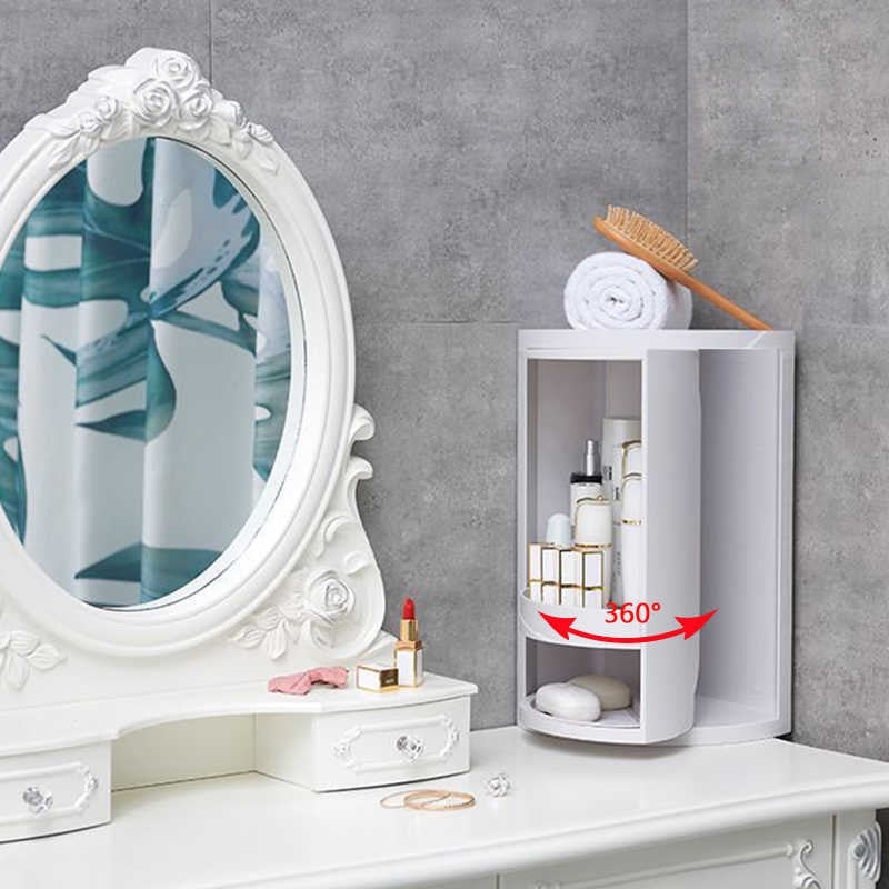 - Product parameters: Triangular rotary storage rack. Material: Environmental protection ABS. Function: Place towels and toiletries. Kitchenware, cutlery.
