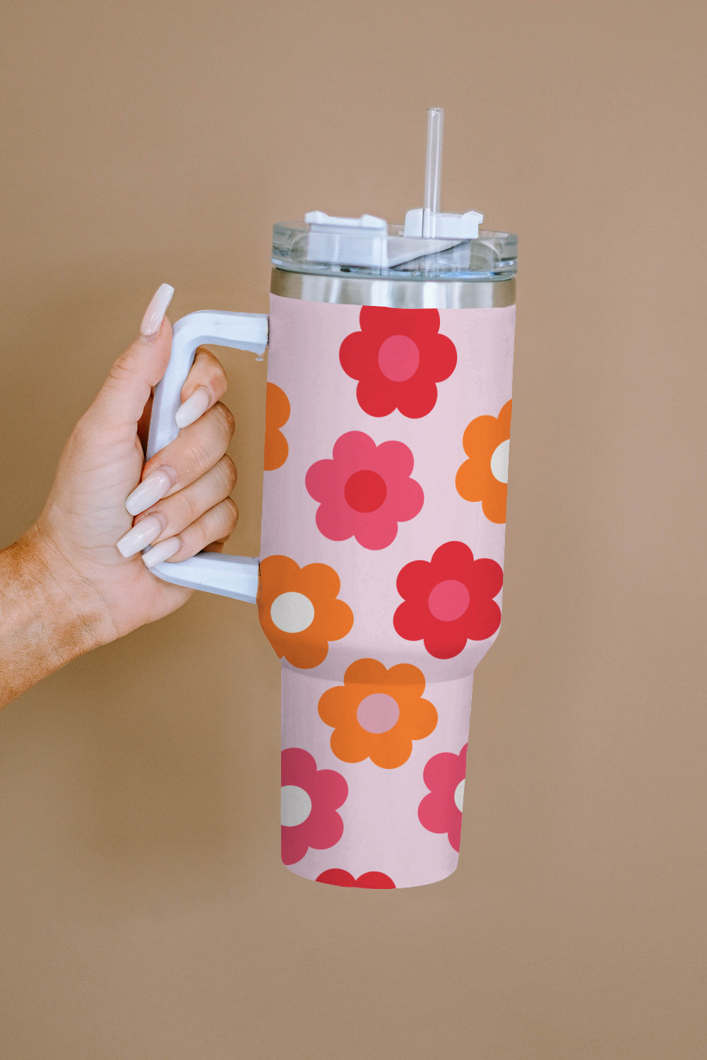 Multicolor Flower Print Handled Stainless Steel Vacuum Cup