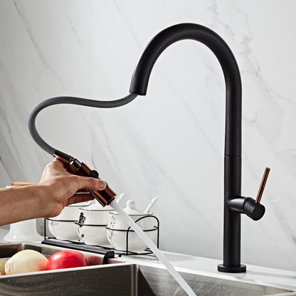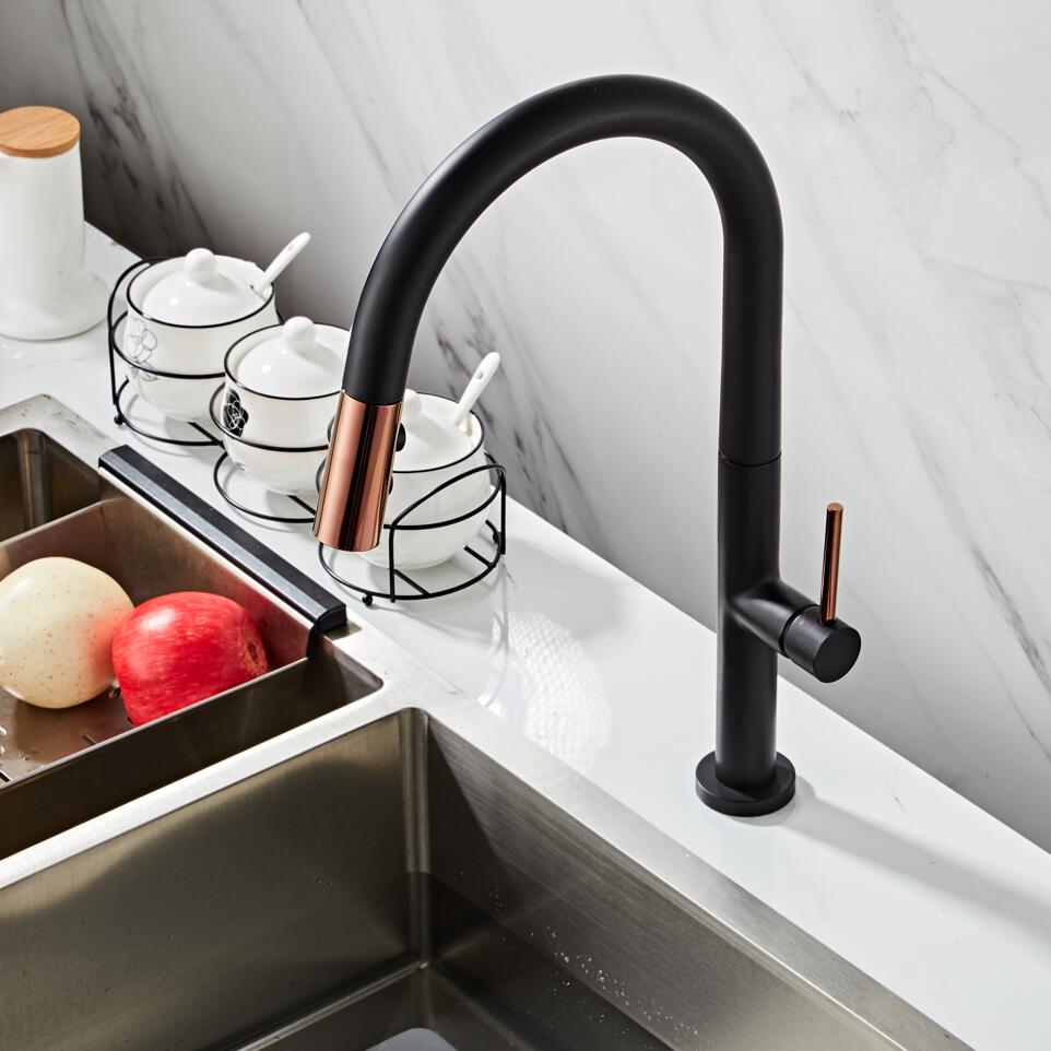 Pull Out Rotation Spray Mixer Kitchen Faucet Matte Black Cold And Hot Water Single Handle Brass Kitchen Sink Faucet