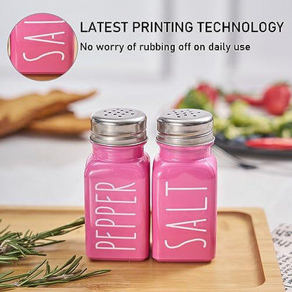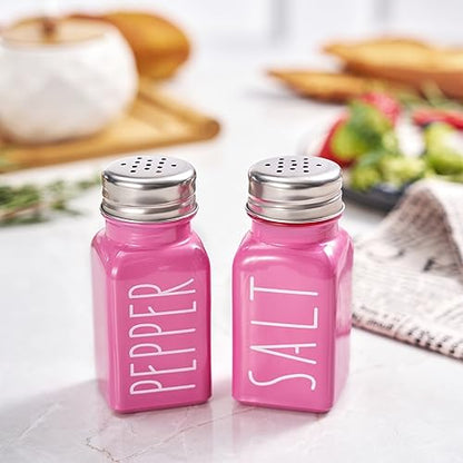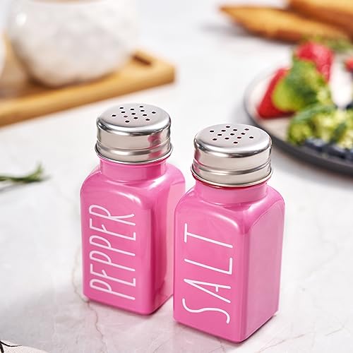 - Gorgeous Pink Home Decor: Our Pink Salt And Pepper Shakers Set is designed in American, the gorgeous style always attract your friends and family. Each spice shaker is crafted from premium glass and matches perfectly with any pink kitchen accessories or other pink kitchen appliances.