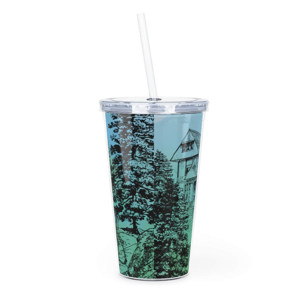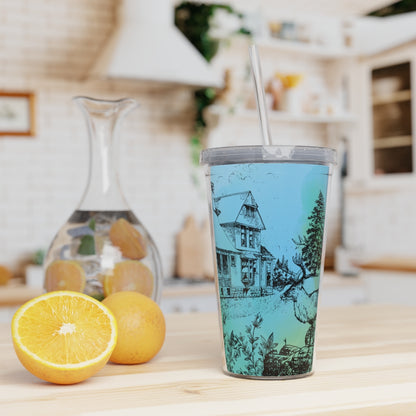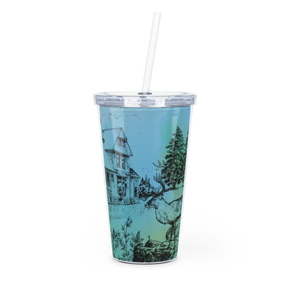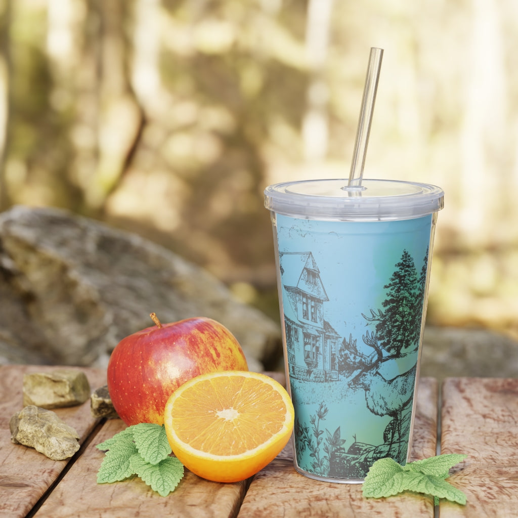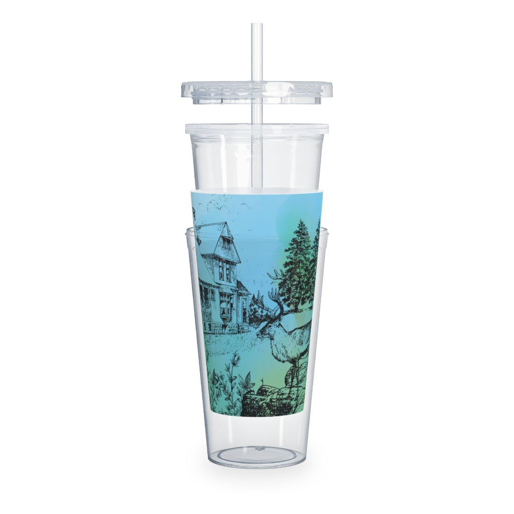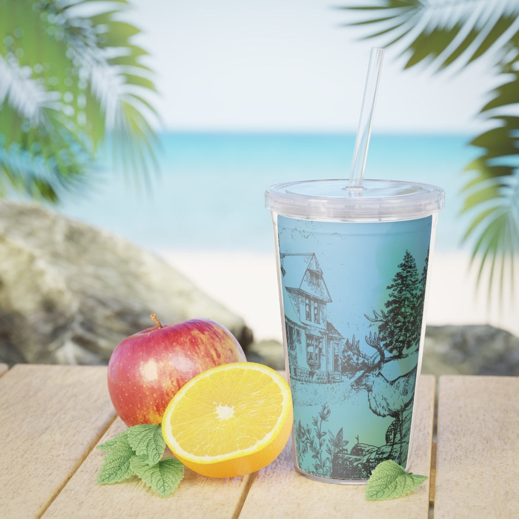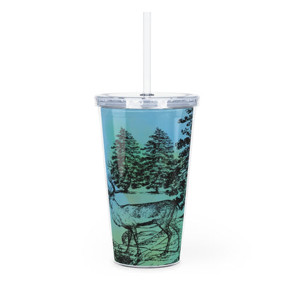 There's a Deer in the Garden Plastic Tumbler with Straw (Designed by Dunbi)