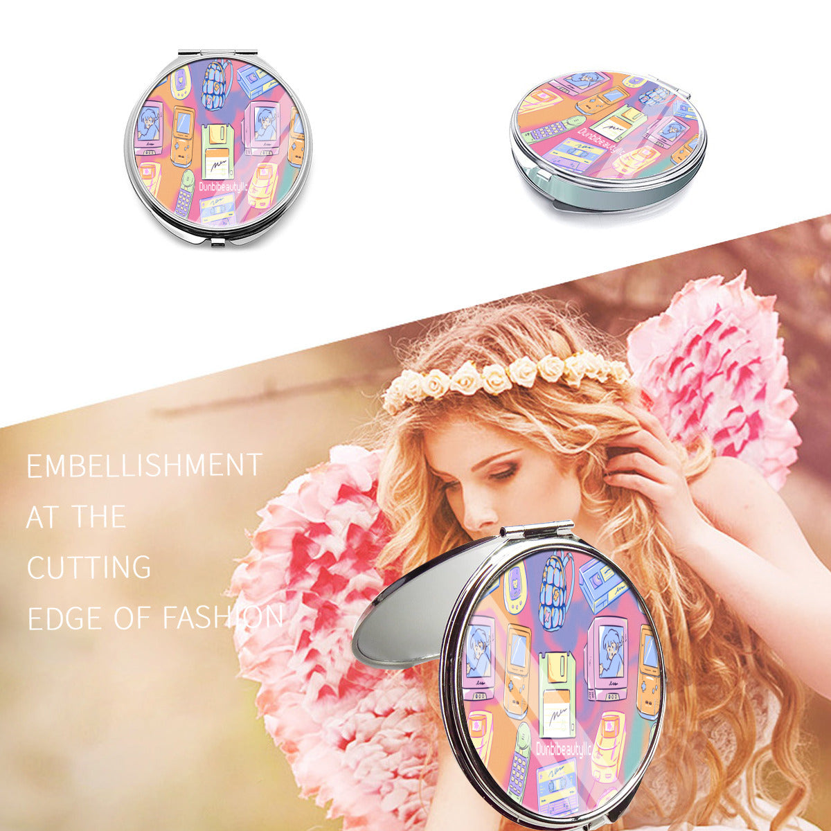 Portable Cosmetic Mirror|Stainless Steel -Kawaii, Retro, Anime, 90's Themed, Sherbet Colors, Pastel (Designed by Dunbi)