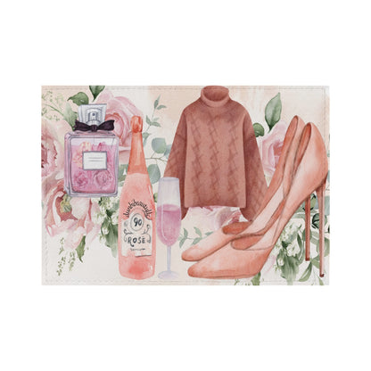 PU Card Bag Dusty Rose, Pink, Perfume, High Heels Champagne & Roses, Aesthetic, Feminine, Fashion (Designed by Dunbi)