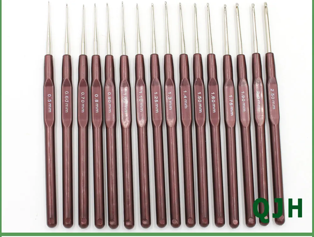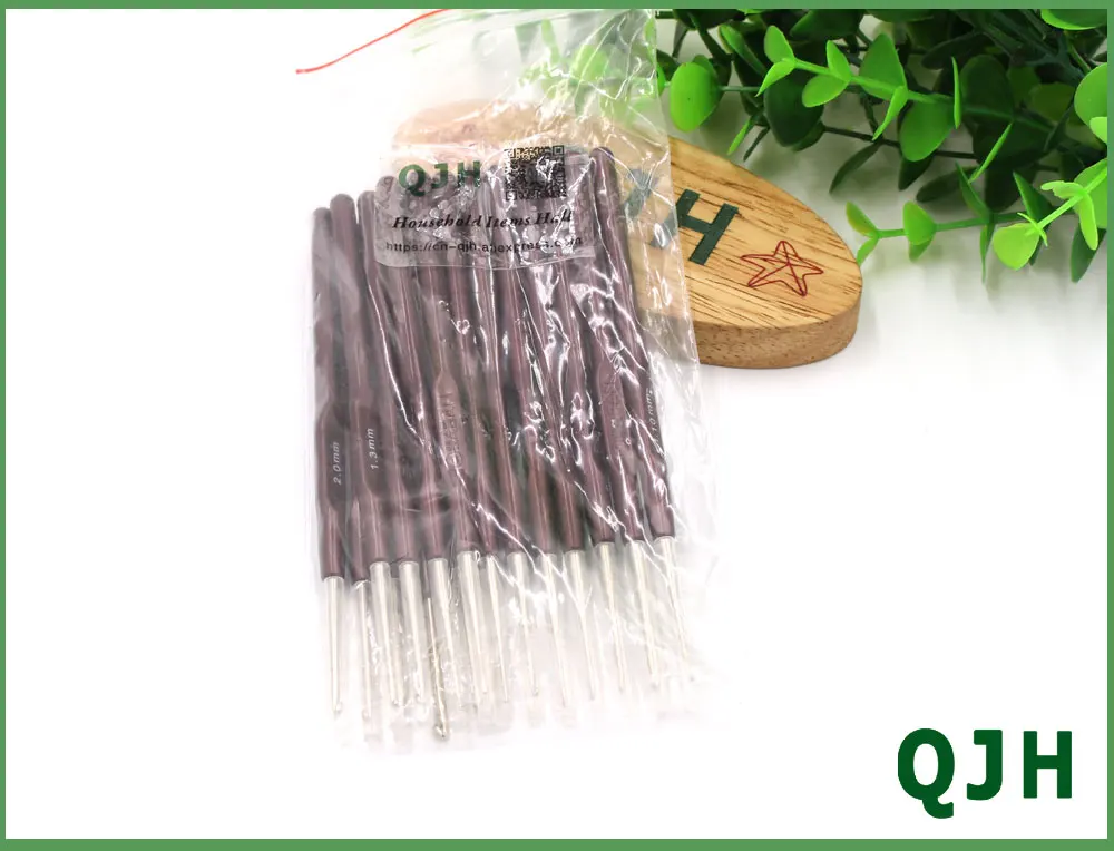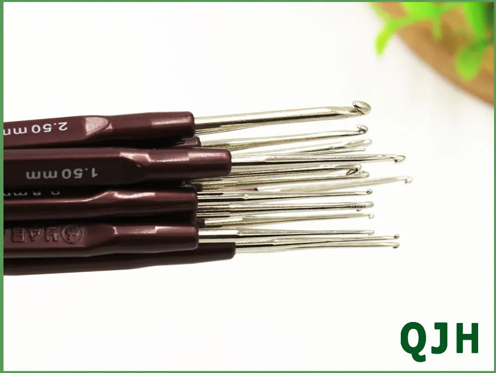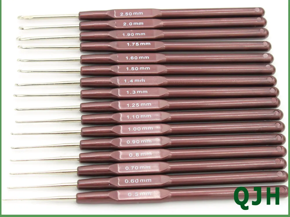 QJH 16pcs Plastic Handle Crochet Hooks Handle Knitting Needles Set Crochetings and Knittings 0.5mm-2.5mm 16Size