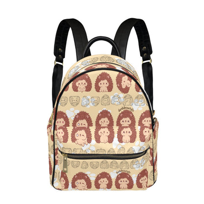 Small Size Backpack Hedgehog, Kawaii, Animals, Paw Prints, Happy, Cute, Sleepy, Baby Animals, Brown, White (Designed by Dunbi)