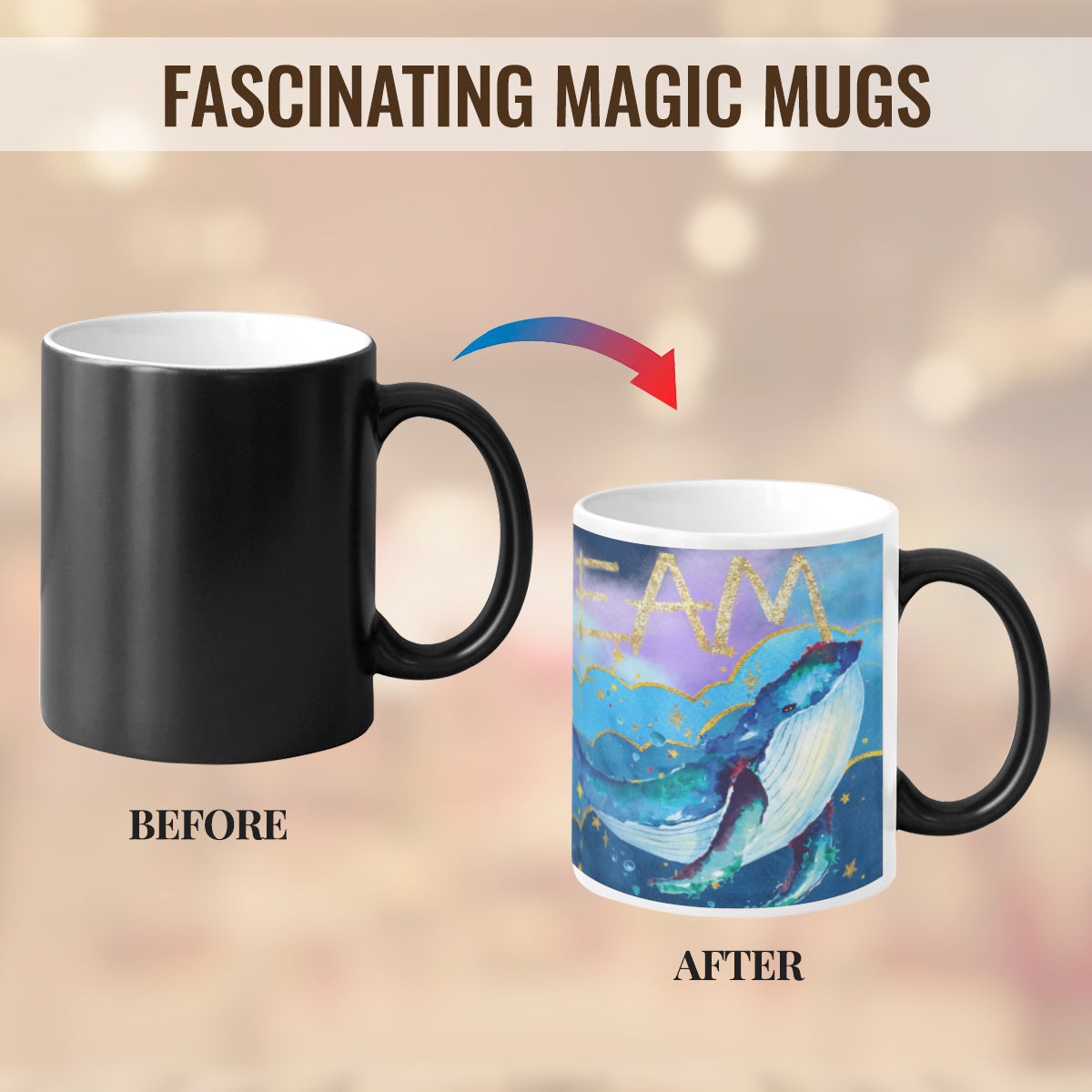 【Product Description】Designed for everyday use, perfect for coffee, tea, hot cocoa, soup, etc. Color changing ceramic mug (from black to white), heat activated to show hidden images Durable ceramic material, safe and healthy to drink.