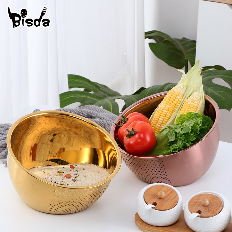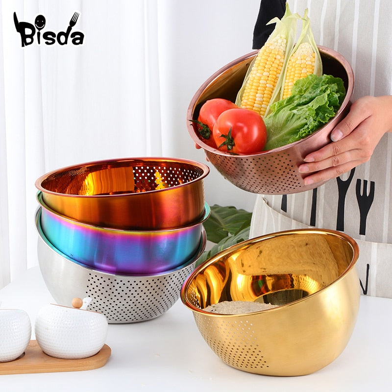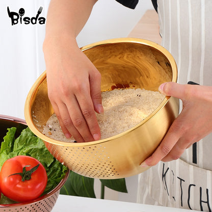 Stainless Steel Drain Basket Bowl Washing Kitchen Strainer Noodles Vegetables Kitchen Utensils Beans Sieve Fruit Cleaning Tools