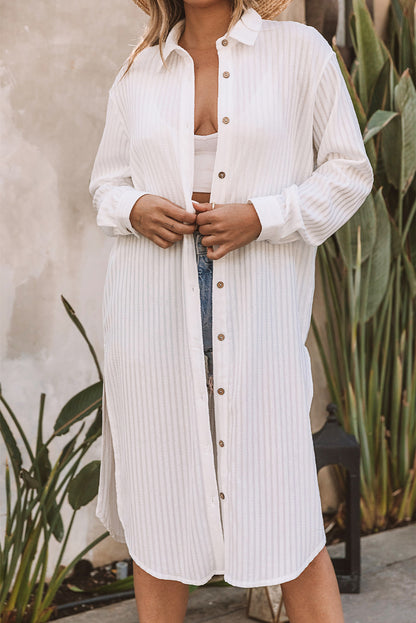 Striped Button Up Long Sleeve Swimsuit Cover Up