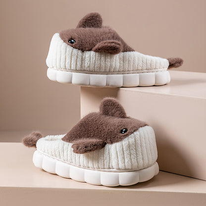 Winter Cute Shark Shoes Women Thick Sole Warm Plush Home Fluffy Slippers Outdoor Garden Indoor Floor House Shoes Dropshipping
