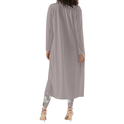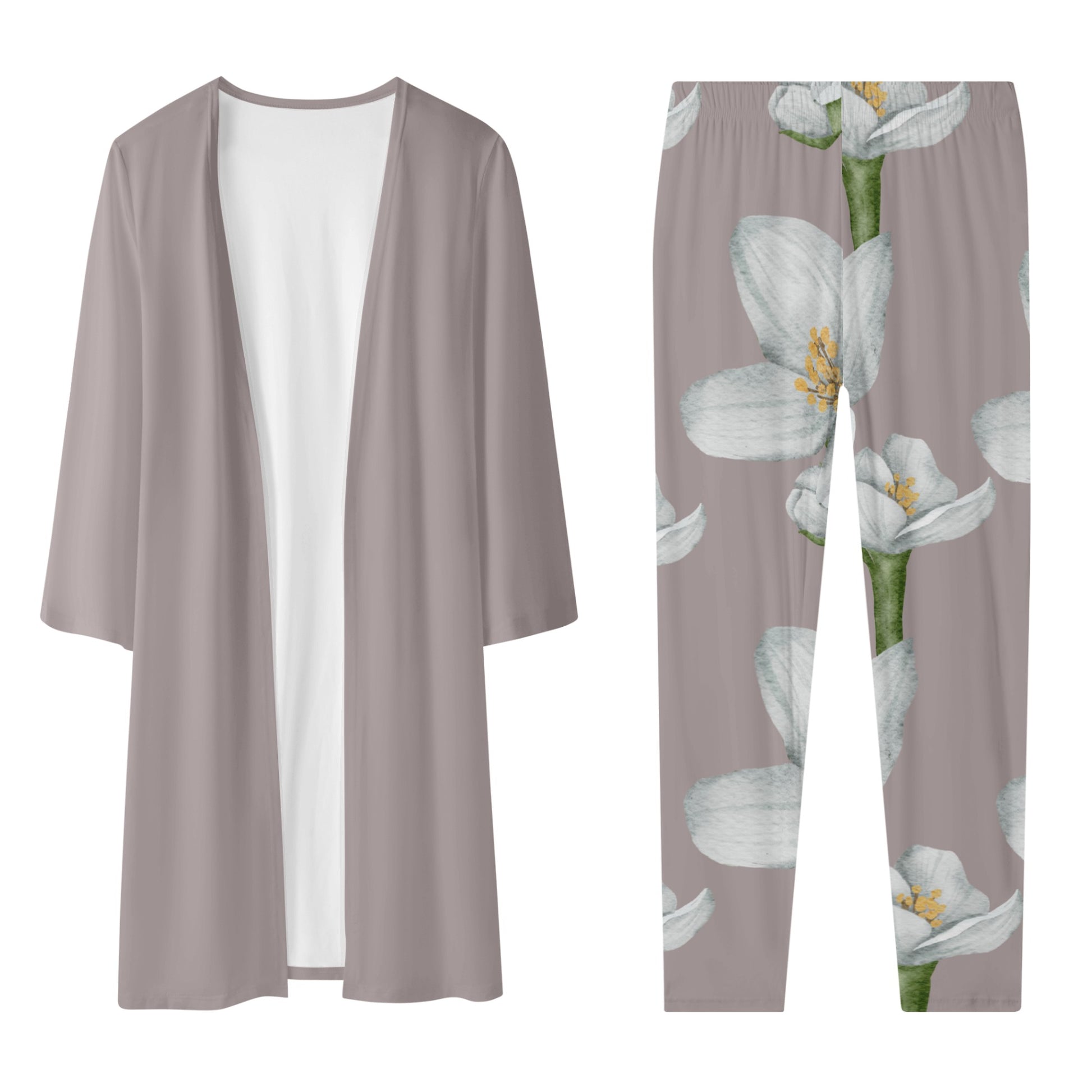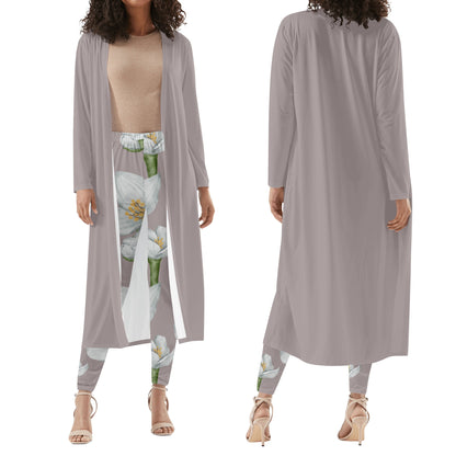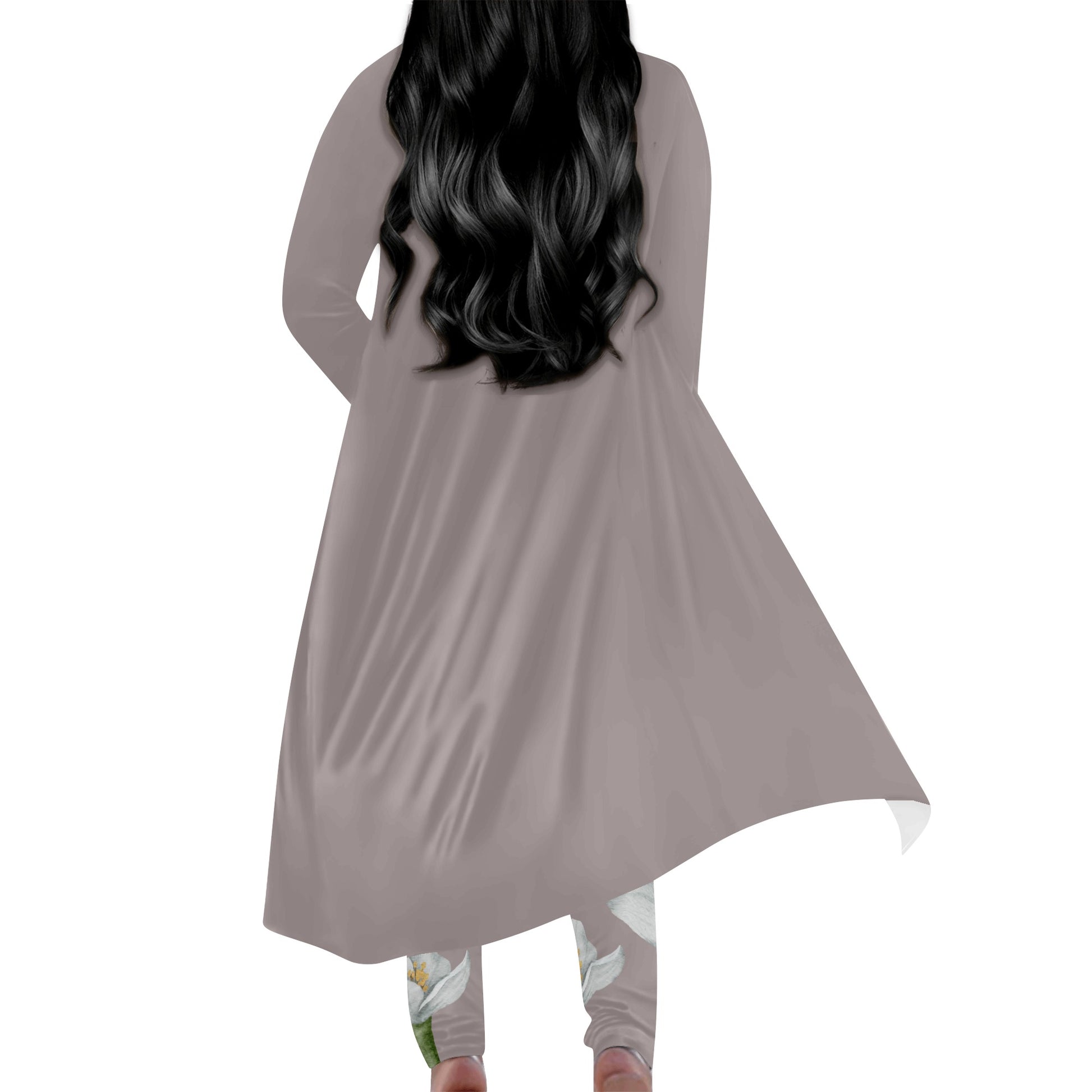 Women's Long Sleeve Cardigan and Leggings 2pcs Taupe with Gray Watercolor Flowers (Designed by Dunbi)