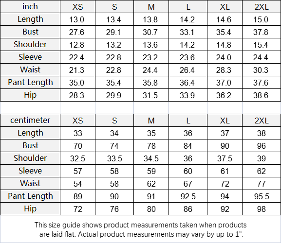 This size guide shows product measurements taken when products are laid flat. Actual product measurements may vary by up to 1".