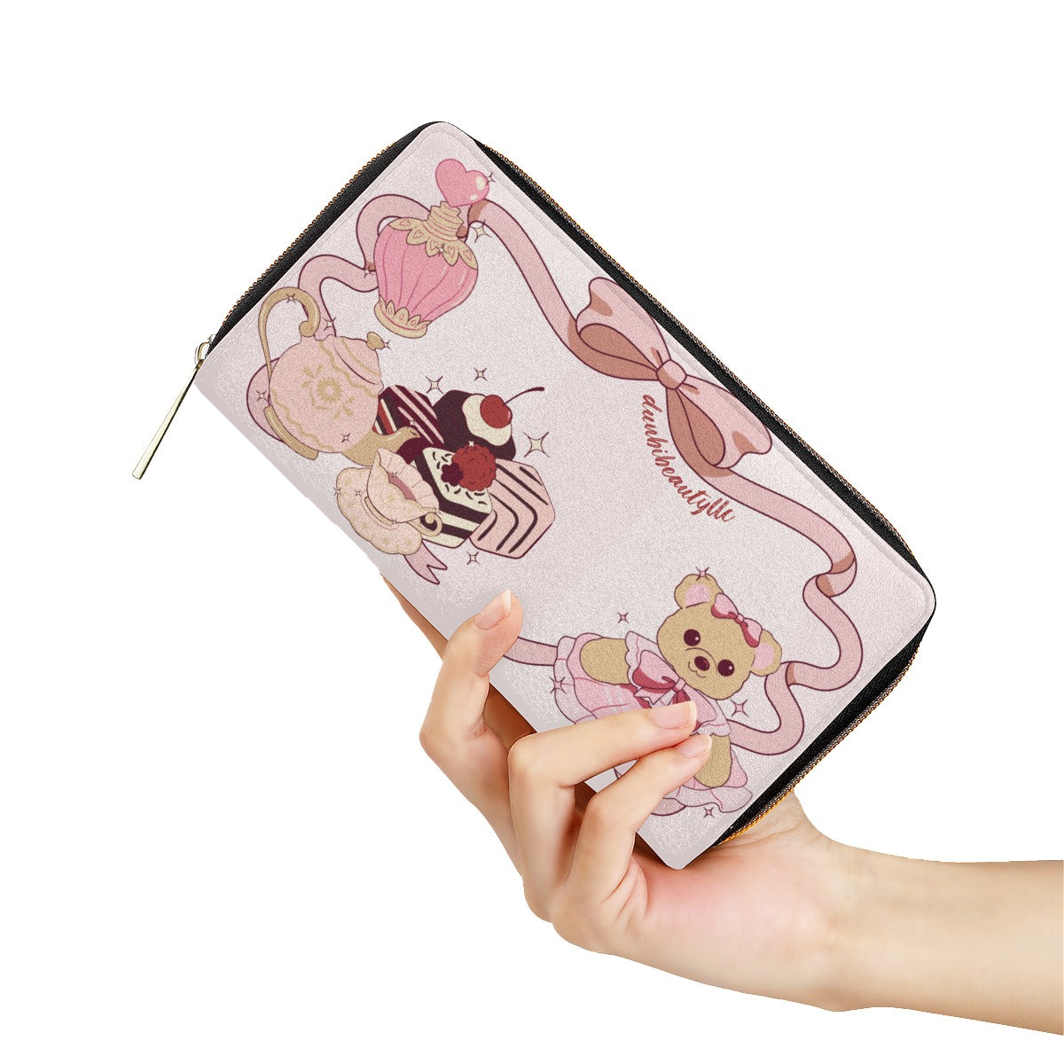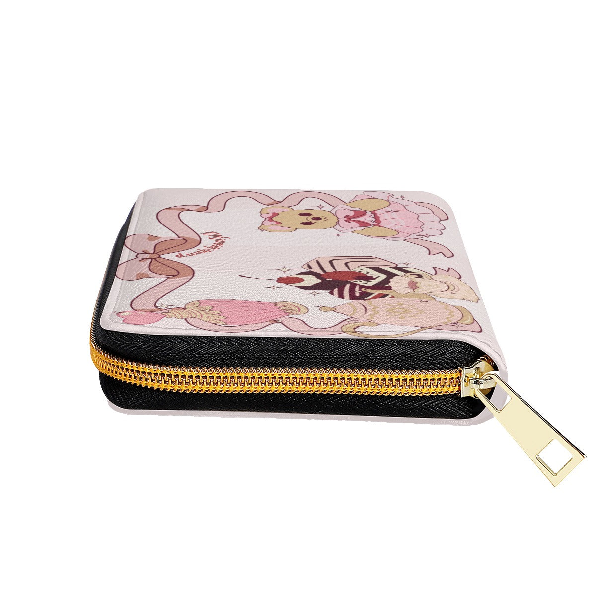 Stylish and portable wallet with metal zipper closure on one side and printable on both sides