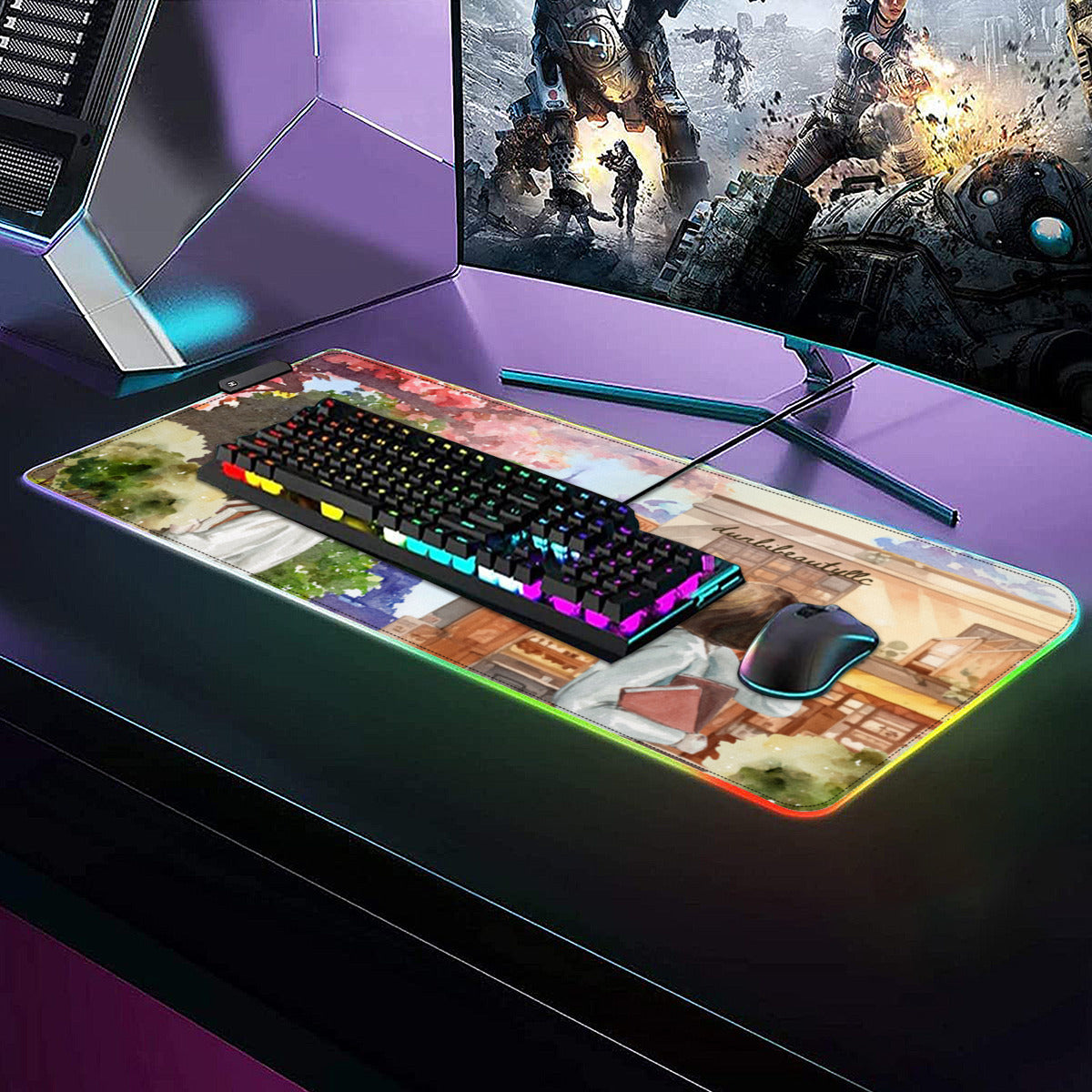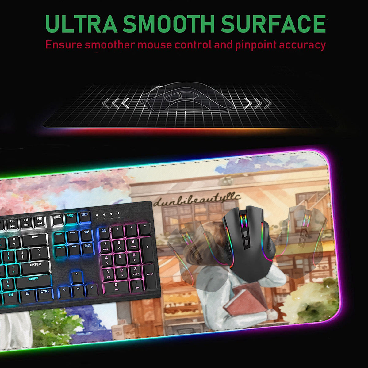 [Product performance] The LED gaming mouse pad provides 7 static mode lights and 3 dynamic modes for you to choose from. Turn off the memory function to remember the last selected lighting mode. Super light fiber chromaticity will give you a colorful game environment. This mouse pad is made of natural rubber, and its bottom can be firmly locked on the desktop. The surface of the micro-textured cloth makes the mouse control extremely precise and smooth movement. When the liquid splashes on the mat, it forms water droplets and slides down. Will not delay your work or games.