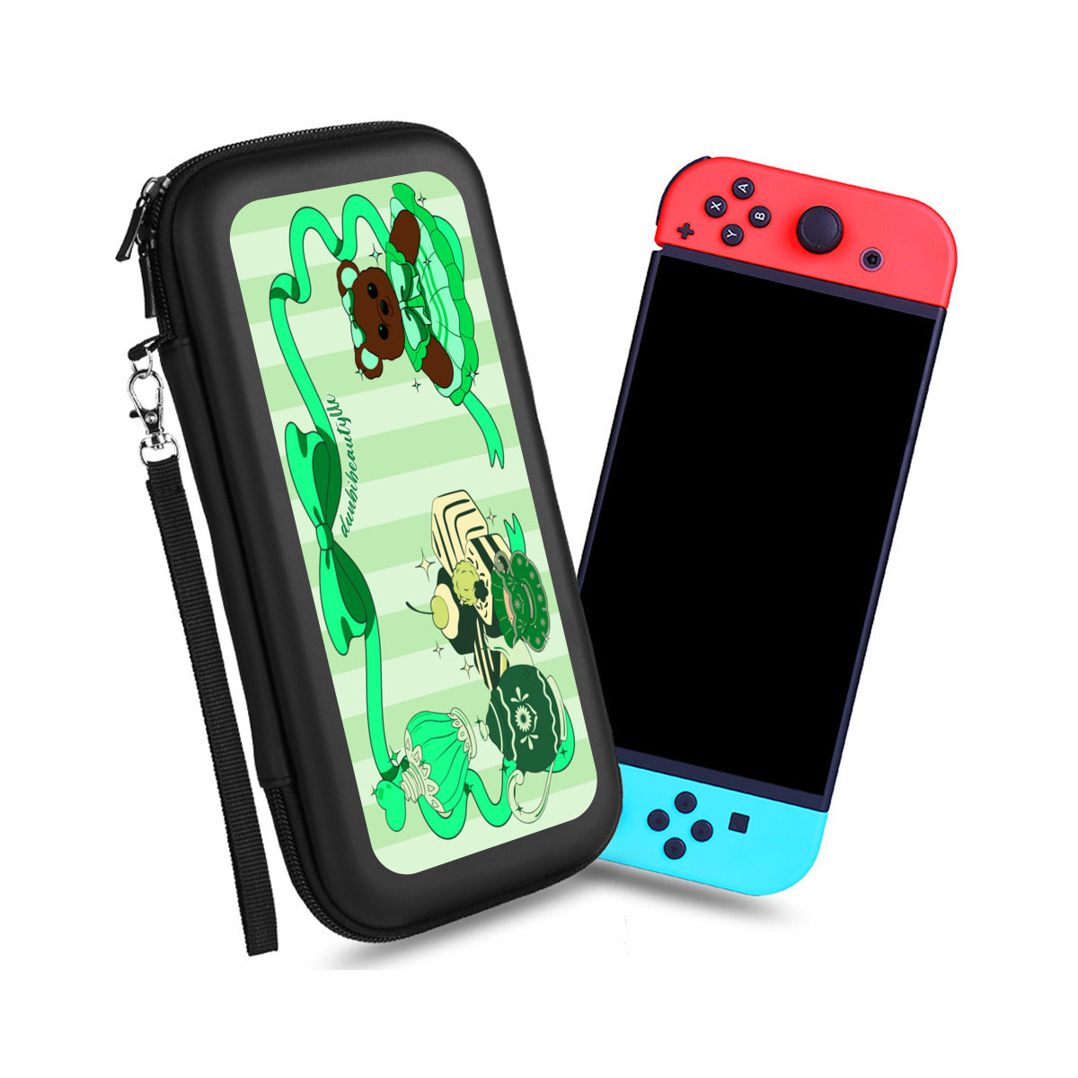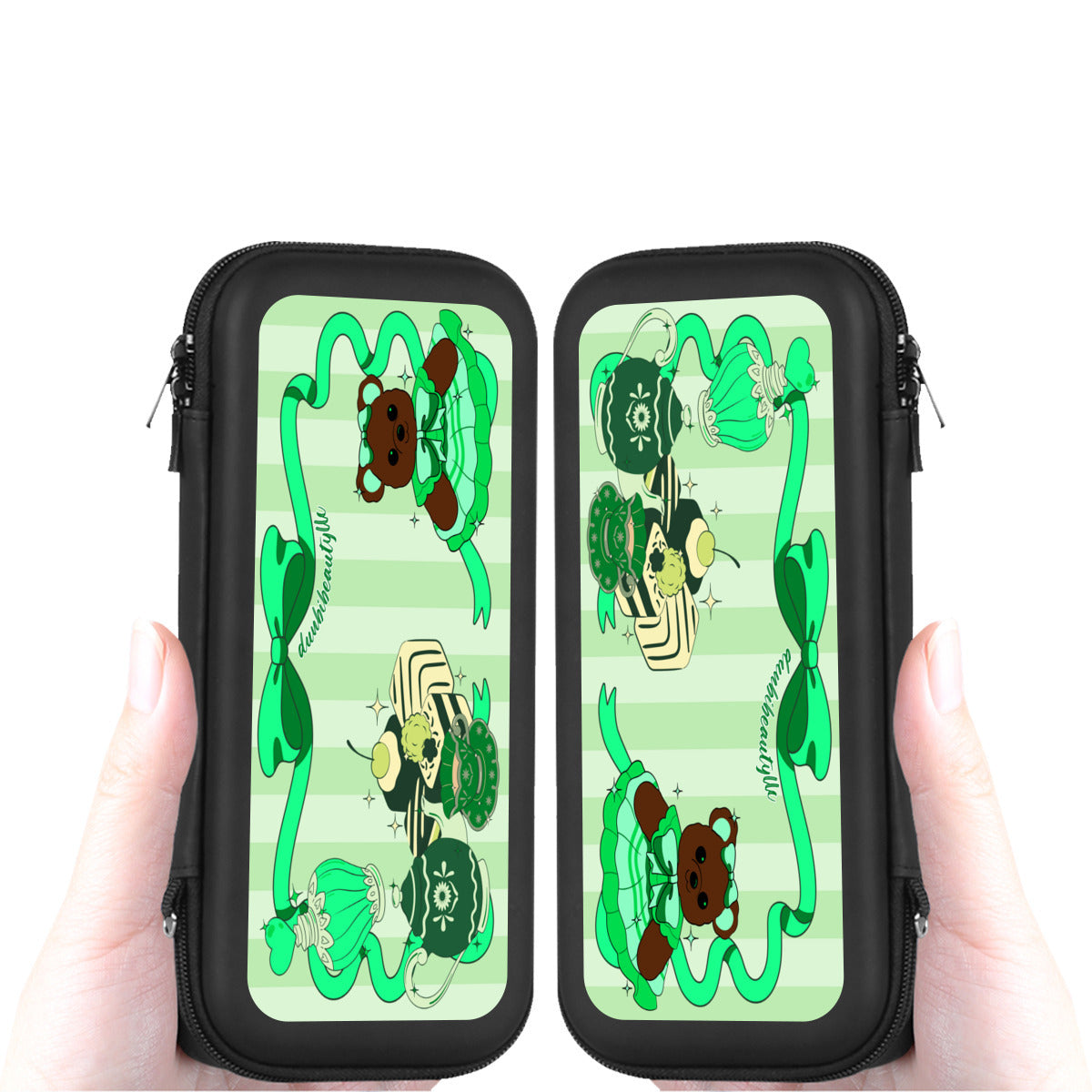 Nintendo Switch Storage Bag (Double-Sided Printing)|Eva Material -Cute Teddy Bear, Tea Party, Ribbon, Bows, Cakes, Cute, Victorian, Doll, Cute Girl, Green Style 1, Stripes (Designed by Dunbi)