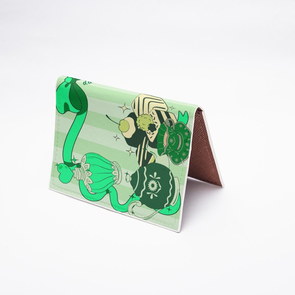PU Card Bag Cute Teddy Bear, Tea Party, Ribbon, Bows, Cakes, Cute, Victorian, Doll, Cute Girl, Green Style 1 Stripes (Designed by Dunbi)