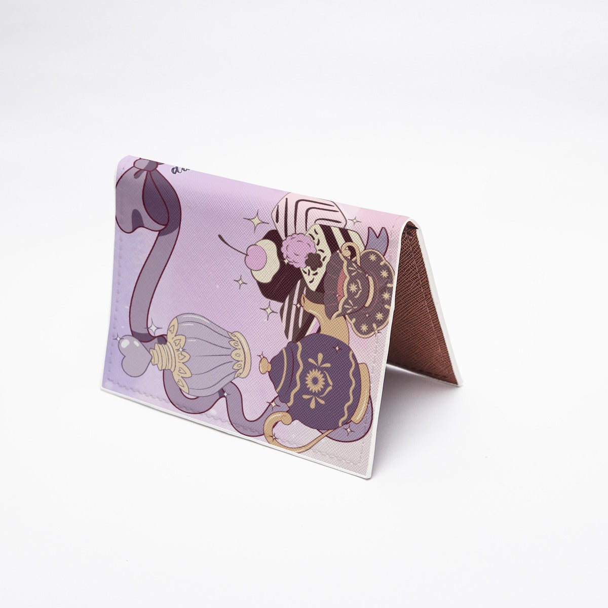 PU Card Bag Cute Teddy Bear, Tea Party, Ribbon, Bows, Cakes, Cute, Victorian, Doll, Cute Girl, Purple Style 2, Pastel Galaxy (Designed by Dunbi)