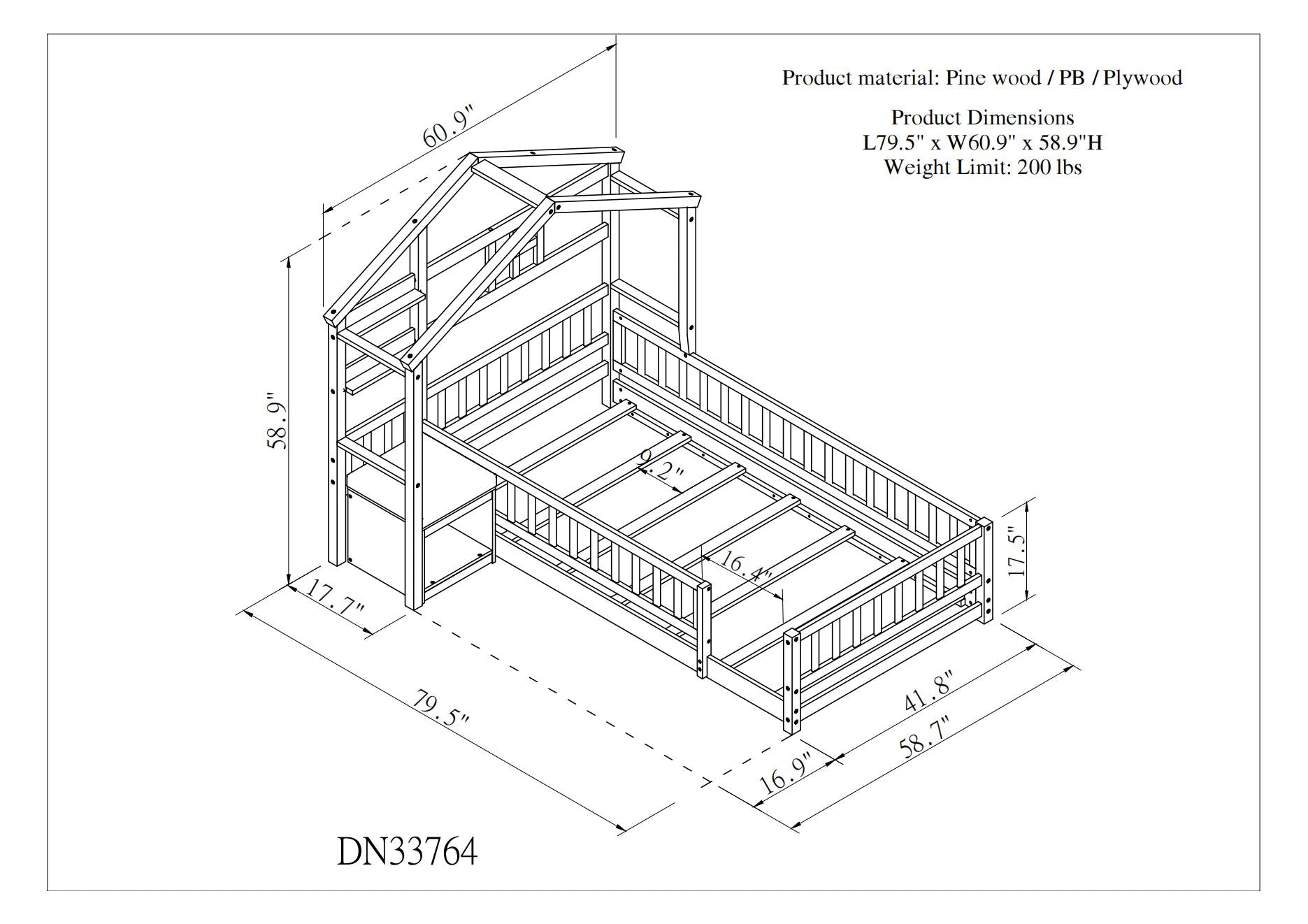This twin size bed is crafted from quality pine wood, providing lasting sturdiness and durability. The twin bed is constructed with firmly secured compartments,
