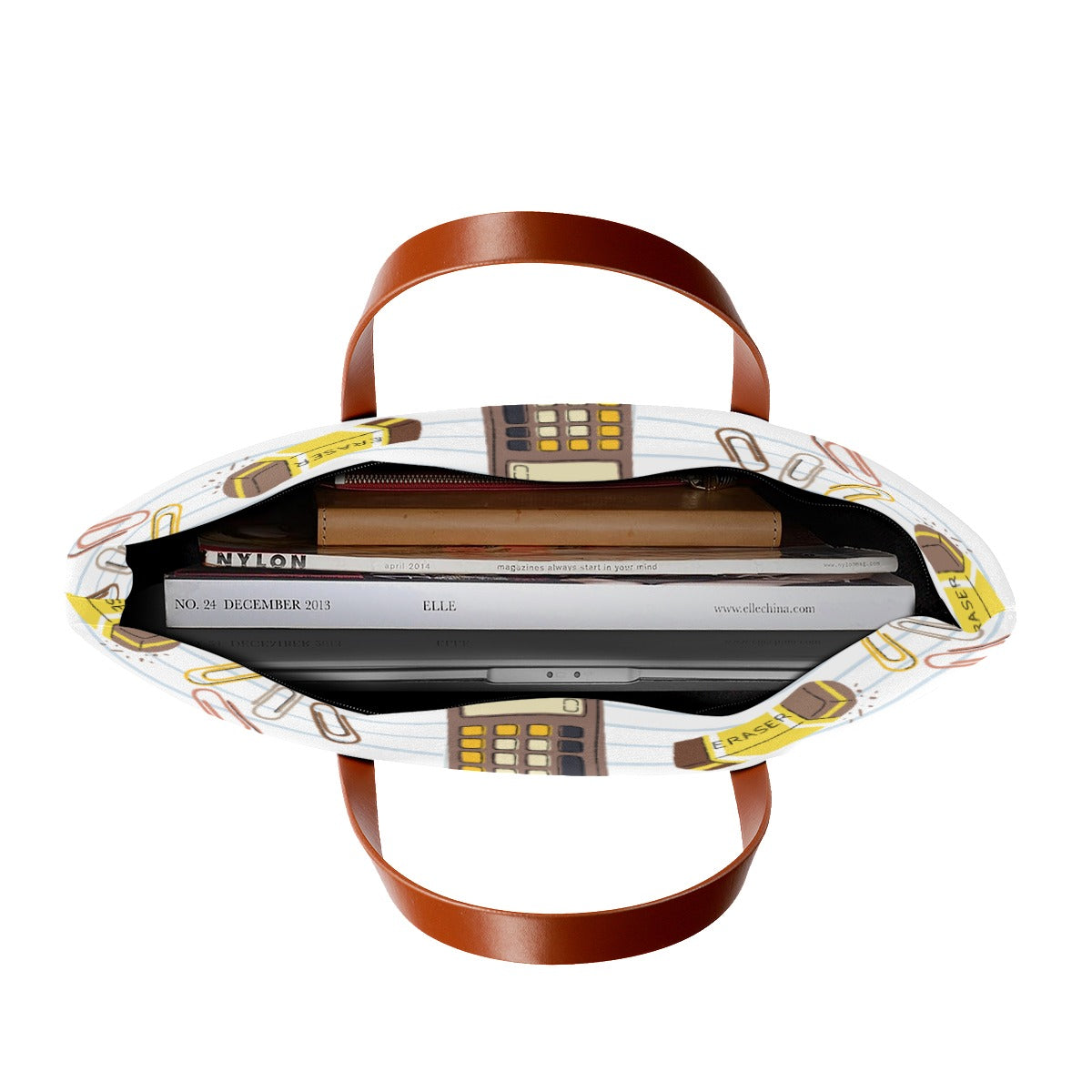 Women's Tote Bag | Diving Cloth Back to School, Teacher, Student, Notebooks, School Supplies, Backpack, Brown, Gold, Gray, Notebook Paper (Designed by Dunbi)